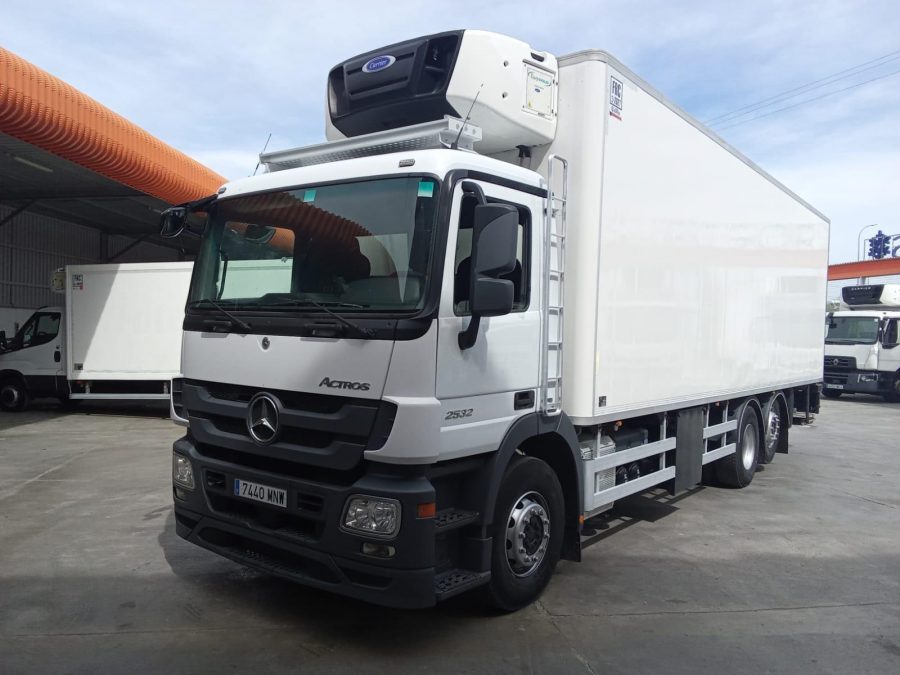 CAMION FRIGORIFICO FRC CON EQUIPO DE FRIO CARRIER SUPRA CITY 1150 MT, MMA 26.000 KG, CARGA UTIL 11.745 KG, CARROCERIA CON MEDIDAS INTERIORES: 8.91 X 2.50 X 2.55, VOLUMEN 56 M/3, SEPARADOR MOVIL, CABINA CORTA CON 2 PLAZAS, CAJA DE CAMBIO AUTOMATICA, 12 VELOCIDADES, 320 CV, EURO 5, CLIMA, DEPOSITO ADBLUE, SUSPENSION NEUMATICA, PLATAFORMA ELEVADORA DE 2.000 KG.