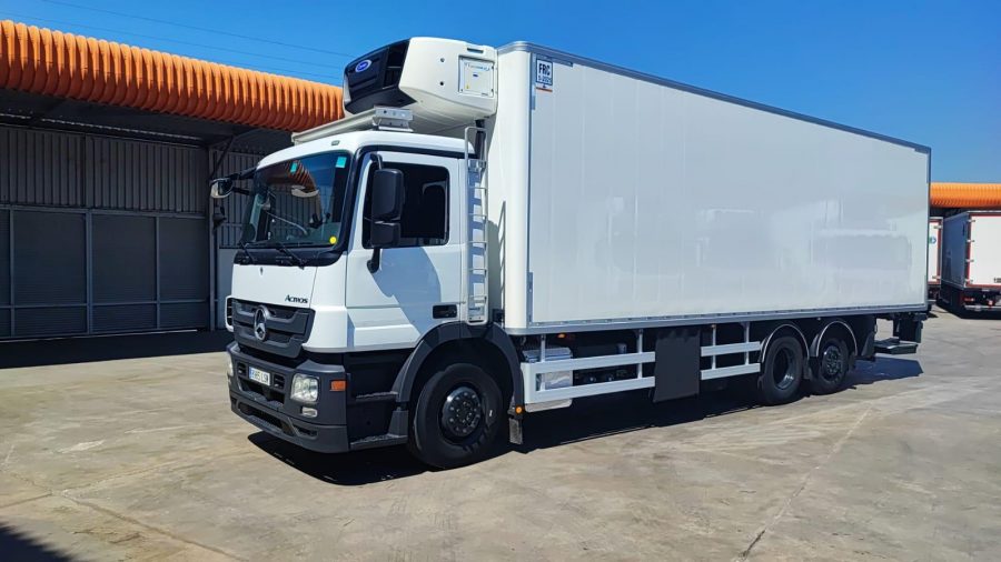 CAMION FRIGORIFICO FRC CON EQUIPO DE FRIO CARRIER SUPRA CITY 1150 MT, MMA 26.000 KG, CARGA UTIL 11.260 KG, CARROCERIA CON MEDIDAS INTERIORES: 8.91 X 2.50 X 2.55, VOLUMEN 56 M/3, SEPARADOR MOVIL, CABINA CORTA CON 2 PLAZAS, CAJA DE CAMBIO AUTOMATICA, 12 VELOCIDADES, 320 CV, EURO 5, CLIMA, DEPOSITO ADBLUE, PLATAFORMA ELEVADORA DE 2.000 KG.