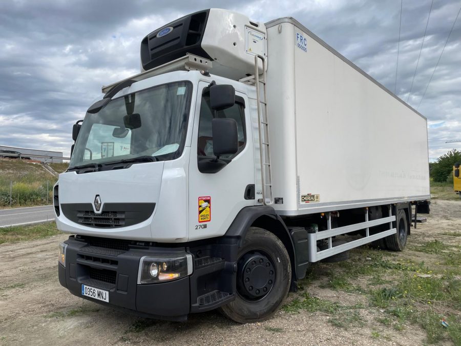 CAMION FRIGORIFICO FRC, EQUIPO CARRIER SUPRA 950, CARROCERIA CON MEDIDAS INTERIORES: 8.70 X 2.46 X 2.35, PUERTA Y PELDAÑO LATERAL, MMA 18.000 KG, CARGA UTIL 6.775 KG, CAJA DE CAMBIO AUTOMATICA, 9 VELOCIDADES, 270 CV, CABINA CORTA CON 2 PLAZAS, PLATAFORMA ELEVADORA DE 2000 KG, DEPOSITO ADBLUE.
